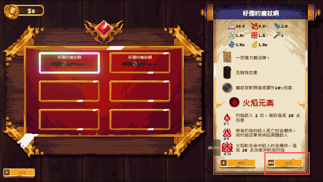8、可以选择自己打造的魔杖,随后点击屏幕右下角的“启用”,就装备成功了。
