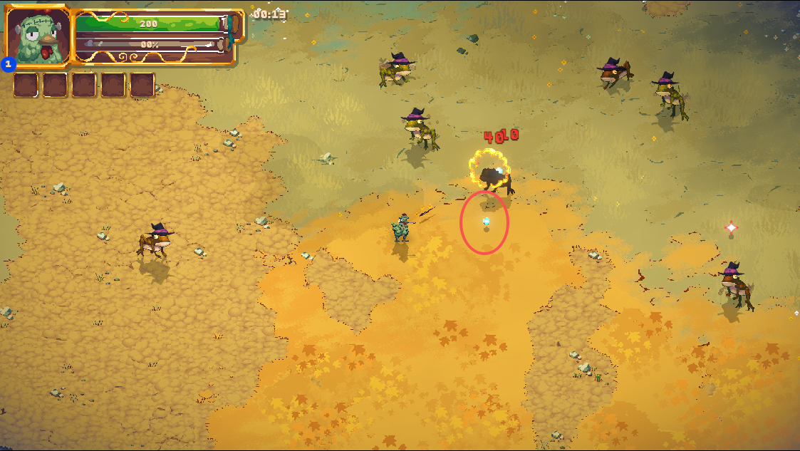 11、击杀敌人会掉落经验,玩家需要控制魔鸡靠近一定范围才会自动拾取。