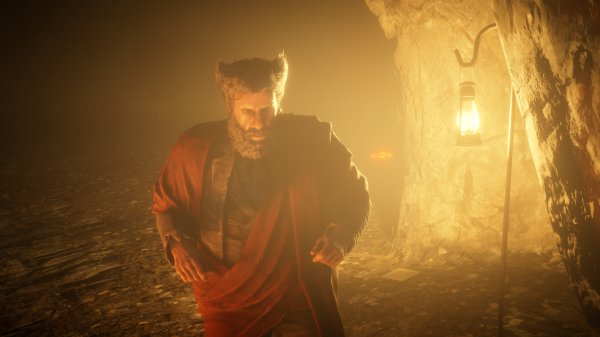 进入山洞后,沿着木桥前往山洞的底层,便可开始触发隐士的对话
