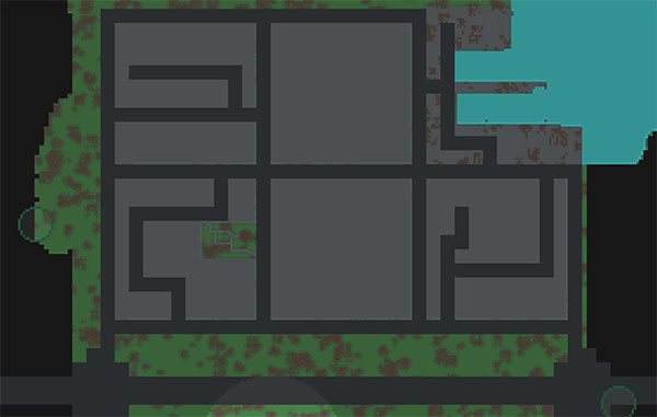 这张图由信号站(方形),宿舍楼(不规则形),野外的各种营地以及一个隐藏地堡组成。