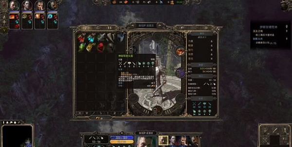 单击屏幕正下方选项键可查看当前英雄的人物信息,包括装备,属性分配,技能树,咒术书(显示技能生效后的增益效果)及当前任务目标(任务栏也直接显示在屏幕右上方)。