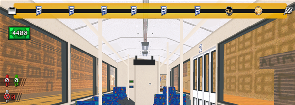 1、进入没票下车游戏,首先在屏幕上方,玩家将看到班次进度,这些就是你这辆电车要停靠的所有站点。