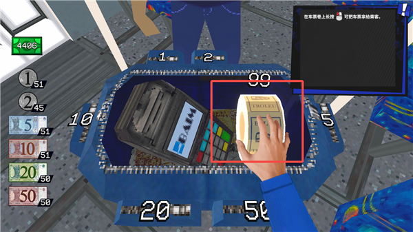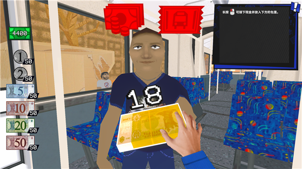 没票下车电脑版是一款第一人称职业模拟角色扮演游戏,玩家化身为电车售票员,将完成检票、收钱、找零等工作流程,并努力维持行车秩序。电车乘客五花八门,从普通老太太到星际观光客应有尽有,玩家需要认真查票、确保每位乘客都付过车费,警惕逃票者。而对于闹事者、突然开唱的街头艺人等看不顺眼的乘客,玩家可以请他下车,甚至还可以动拳头教训捣乱乘客,全都在职责范围内。电车稽查员有时候会上车突击检查,不要让他发现有人逃票或者使用伪造的车票,不过玩家也可以将他一起扔出车外,毕竟这是在你的地盘上!