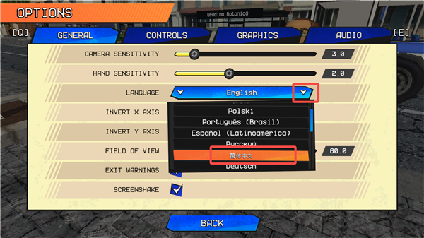 2、在【LANGUAGE】一栏,下拉选择【简体中文】即可。
