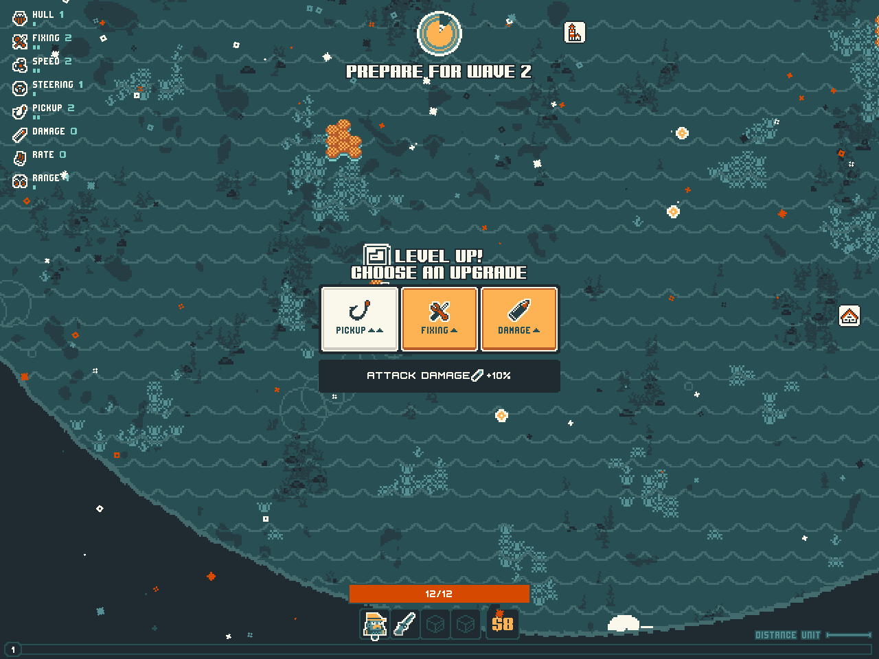 4、玩家击杀一定数量的海怪获得经验就可以升级,玩家可以自由选择需要提升的方面。