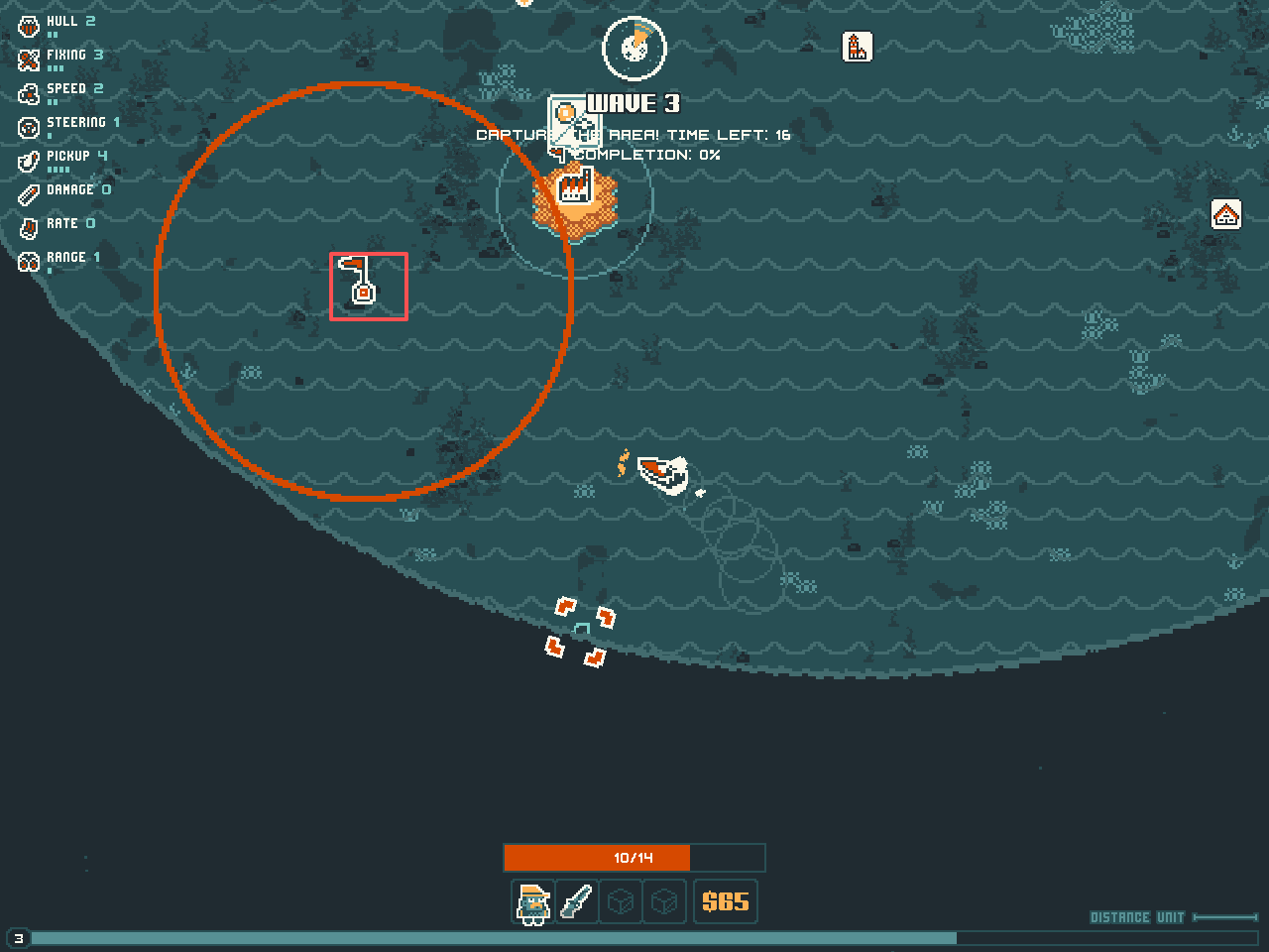 7、最好不要跑到哨站视野范围之外,船只自身的船只视野非常有效,无法预判海怪的位置,玩家利用金币通过升级中心哨站的视野范围才是最安全的方式。
