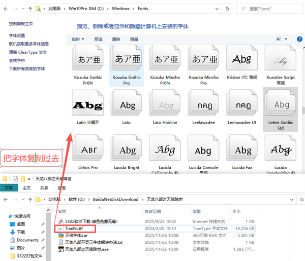 下载我编辑的“天佛体”字体文件,复制到C:\Windows\Fonts即可!!!!!!