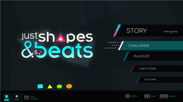 形状节奏(Just Shapes & Beats)是由Berzerk Studio公司发行的一款合作音乐弹幕游戏。游戏的玩法基于三个基本原则:避开方块,跟上节拍,然后反复死亡。