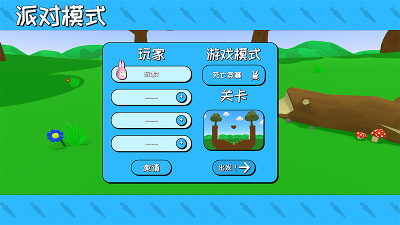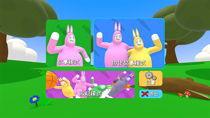 游戏有故事模式和派对模式两种玩法。故事模式适合单人或双人合作,完成50个充满挑战的关卡;派对模式则支持最多四人同乐,可以一起踢朋友下悬崖、打篮球或者比赛抓胡萝卜。每个关卡里还有隐藏的胡萝卜,找到并送到终点就能获得奖励。
