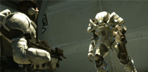 接下来的场景需要坐电梯,刚进门发现右上角有个会开枪的摄像机,可以轻松干掉。之后进入电梯控制板附近,按“E”键可以启动电梯。有一点需要玩家注意,这时候可以从电梯跳出到斜坡上面,当斜坡上存在电流时则会造成伤害。