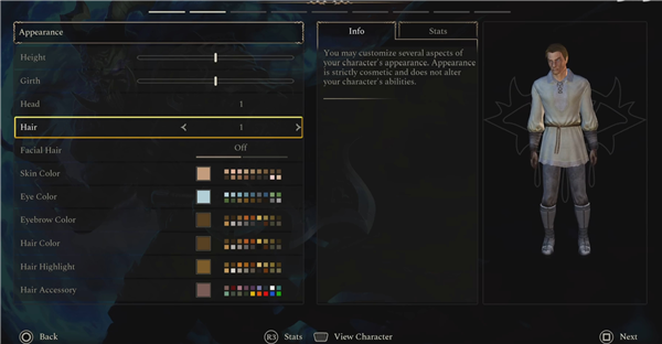 2、然后定制角色外观,肤色、身高、头发颜色等。
