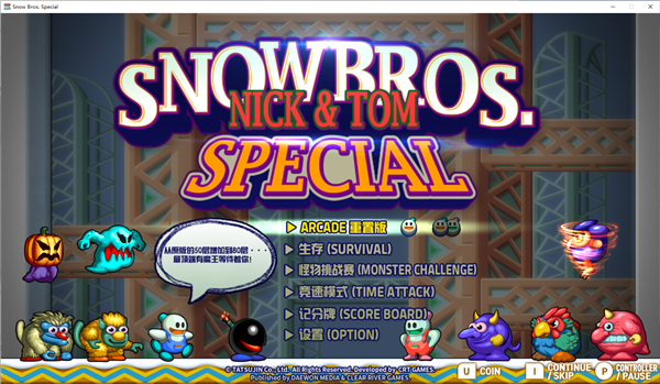雪人兄弟1特别版,也称雪人兄弟特别周年纪念版,它是一款平台动作游戏,同时也是经典街机游戏《雪人游戏》的现代重置版,它采用现代技术让画面更加精致,升级游玩流畅度,给玩家更加舒心的游玩体验。雪人兄弟1特别版在玩法模式上包括重置版模式、怪物挑战赛、竞速模式等玩法,玩家不仅能畅玩新版本,还可以享受老版本,重温童年回忆。