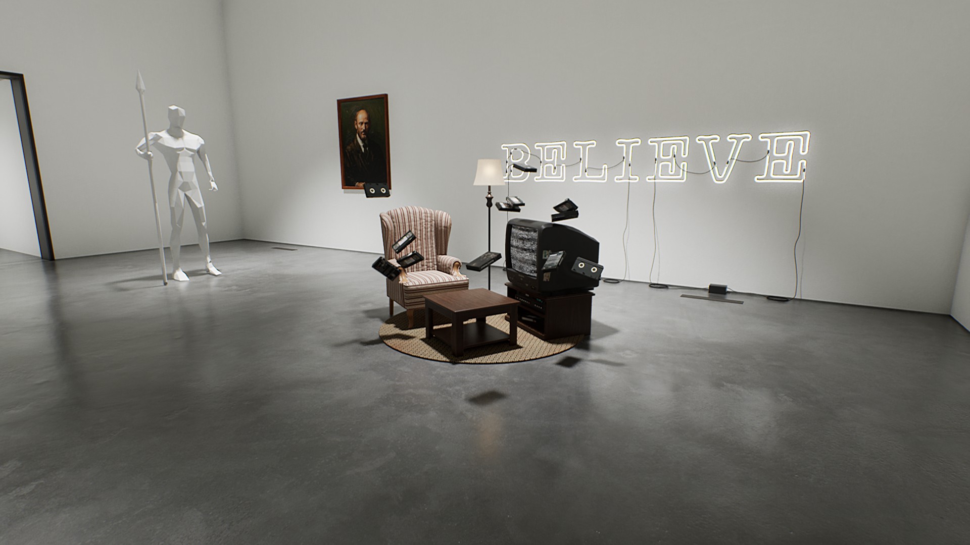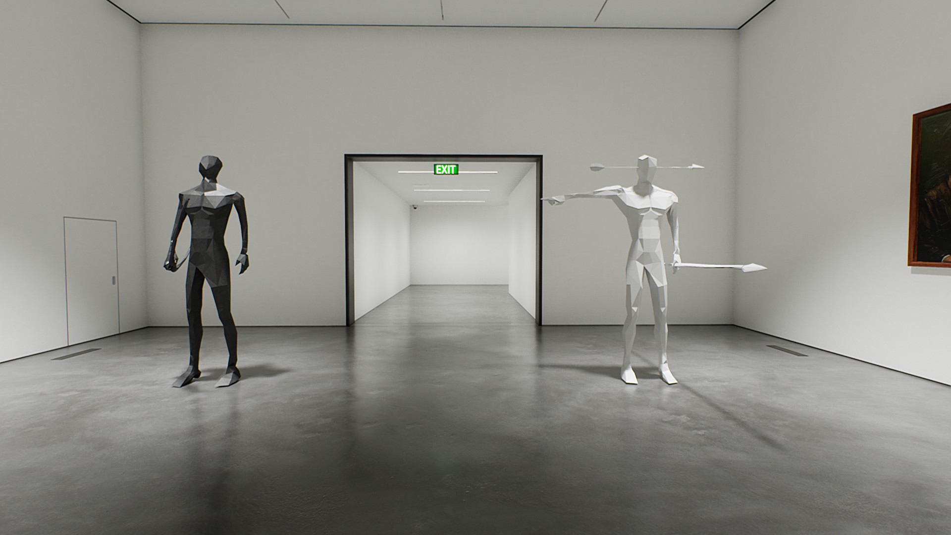 异馆电脑版(Twisted Gallery)是一款心理恐怖游戏,玩家将独自被困在一座不断循环的诡异现代美术馆中,面对纯色布景与姿态怪异的假人,你必须通过细致观察每次循环中的画作翻转、假人姿势变动或字母变更等细微差异,逐步发现规律,最终找出异常源头,才有可能挣脱这无尽回廊的束缚。异馆游戏通过简单却压抑的环境与逐步深入的解谜,营造出令人毛骨悚然的紧张感,让玩家在寻找出路的焦虑中,体验心理与视觉的双重压迫。