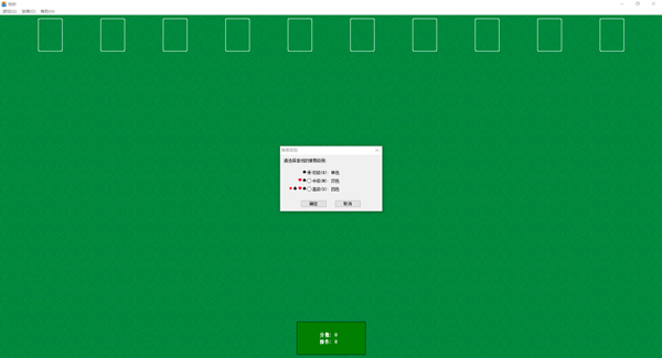 6、一开始要很贪。发第一张牌时尽量叠牌,把底下的牌都翻出来,并力求挖一个空位出来。深挖洞广积粮呀!