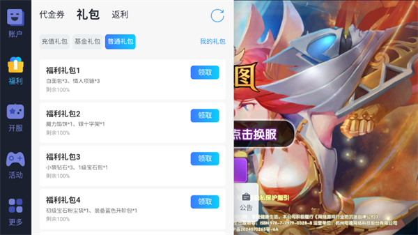 1、进入游戏后,点击游戏页面上的悬浮球,领取礼包兑换码