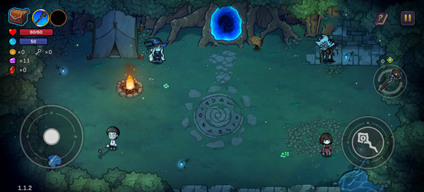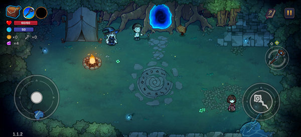3、游戏采用横版战斗,玩家可通过左侧轮盘来控制角色移动,右侧法杖来攻击敌人;