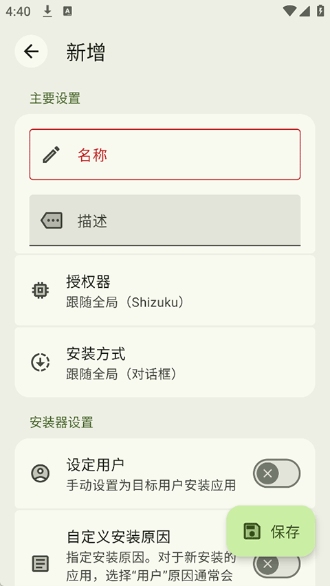 4、也就是将应用的名称和包名进行新增,一切就绪后即可点击你预设的安装包进行安装即可,此时就不会使用系统自带的安装器进行安装,而是直接使用InstallerX Revived进行安装了