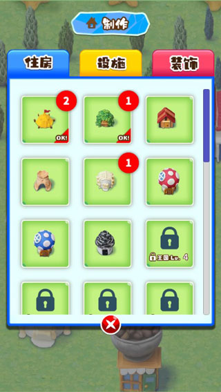 2、收集好素材后开始制造建筑物,建好后把建筑物摆在自己看着顺眼的位置即可,建造住宅增加人口,建造设施增加税收,合理进行安排吧。