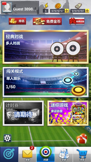 对于游戏的玩法,其实还是比较简单的,只需要选择经典或者闯关模式,通过点击屏幕移动来瞄准靶子中心位置然后释放即可进行射击,射击的过程以动画的形式进行,非常的酷炫。