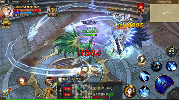 天使纪元免费版是一款3D魔幻MMO战斗手游,在整体设定上打造的生动明亮,场景也是非常的丰富多彩,人物释放的技能也非常酷炫且有特效展示性,还对装备细节上进行了更细致的刻画。游戏中的装备、翅膀在强化后会额外获得流光效果,穿戴这些装备的角色会充分的曝光它的个性和魔幻气息。不仅如此,游戏中提供了狂战士、圣射手和魔法师,三个职业可供玩家选择,不同的职业所拥有不同的技能特点和战斗定位,还可以让你选择自己心仪的职业进行创角。除此之外,天使纪元游戏有独创的跨服夺宝、血色争霸和天使之剑解封等多重特色内容玩法,致力于带给你更加华美炫酷的超爽RPG动作游戏体验。另外,天使纪元游戏中还加入了非常多的有趣系统以及精彩的主线剧情故事,让玩家们能够在这款游戏收获到别样的欢乐,感兴趣的话不妨来下载体验吧。