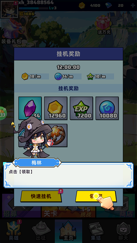 5、最后点击挂机奖励可以领取大量材料和经验。