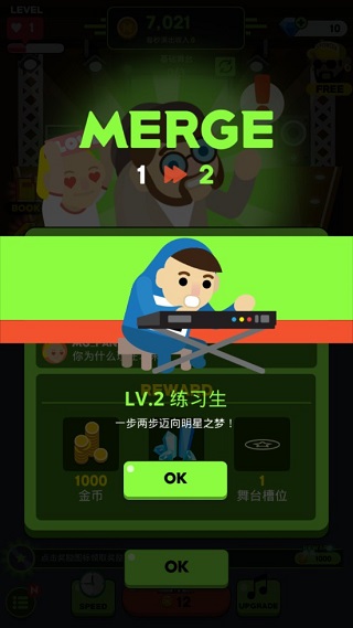 3、游戏采用了合并养成的核心玩法,玩家可以通过合并相同的练习生来获得更高级别的偶像。
