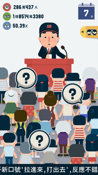 4、轻松欢快的音乐特效为游戏增添了更多的娱乐氛围,让玩家在竞选总统的过程中也能享受到愉悦的游戏体验。