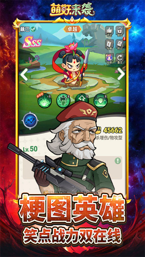 萌妖来袭是一款高策略性的放置卡牌手游。在这里,你将化身小镇指挥官,通过收集各具特色的植物萌妖,排兵布阵,构建最强阵容,以抵抗僵尸进攻,保护植物小镇,还可以将英雄改造进化,变得更加强大。另外,萌妖来袭游戏还有完善的挂机系统,在这里玩家可以享受到轻松挂机的游戏体验,不需要手动操作,一键自动战斗,超多道具都能通过挂机战斗获得,休闲不肝,还有多种副本等待玩家发现。
