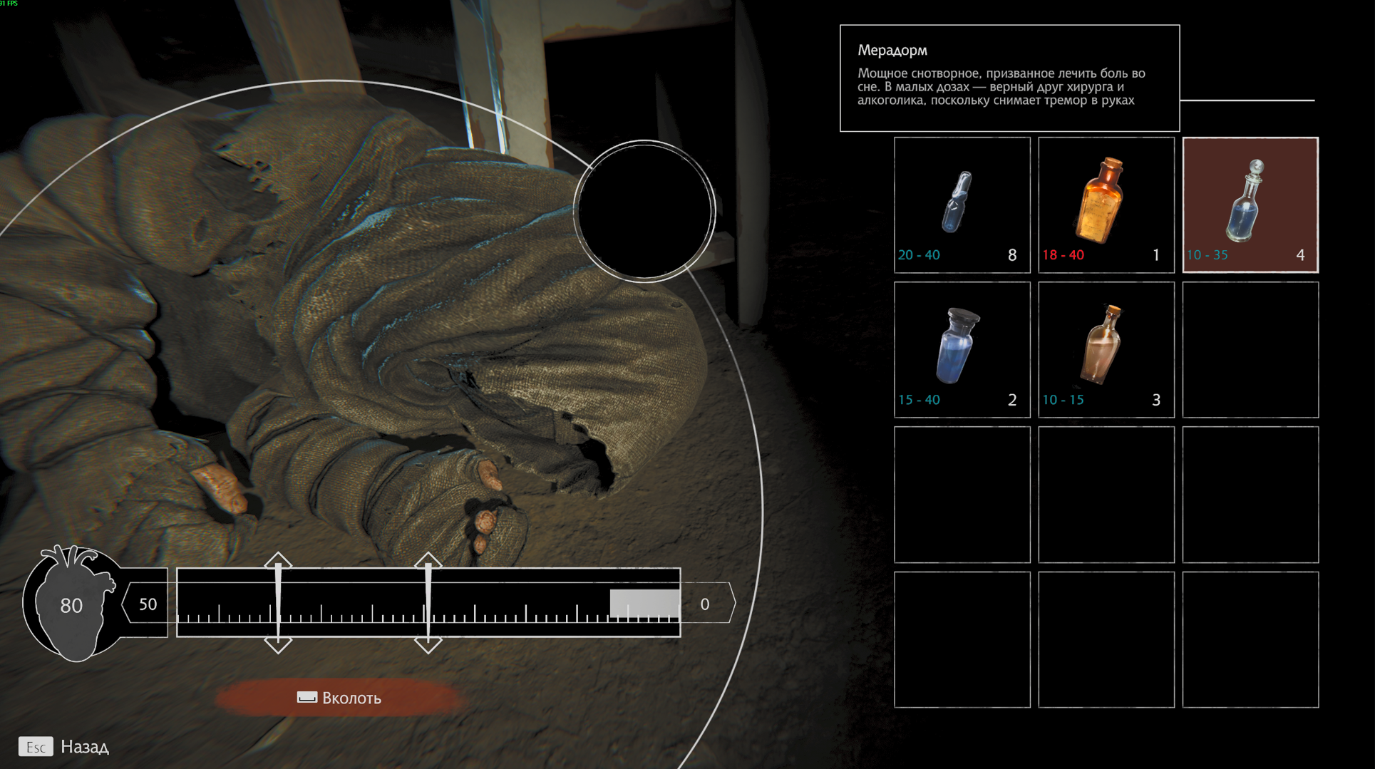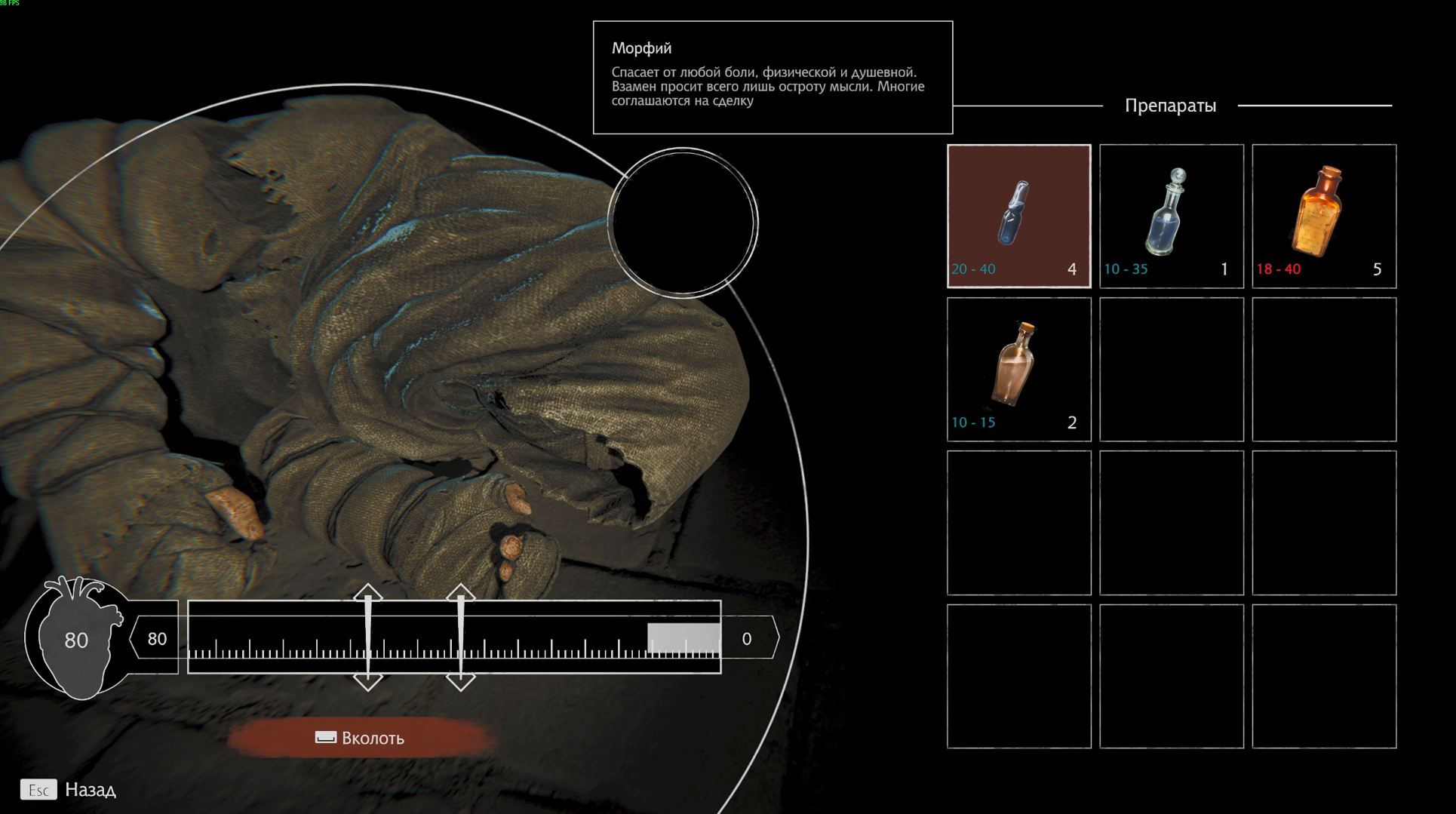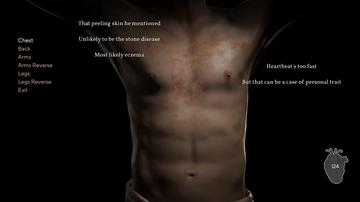心脏附近的左下角有一个两位数的疼痛量表。目前游戏中有三个疼痛量表值的患者,30,50和80.因此,可以获得30,50和75?汞合金。通过专注于它,您可以很容易地了解在特定患者身上使用哪种药物。