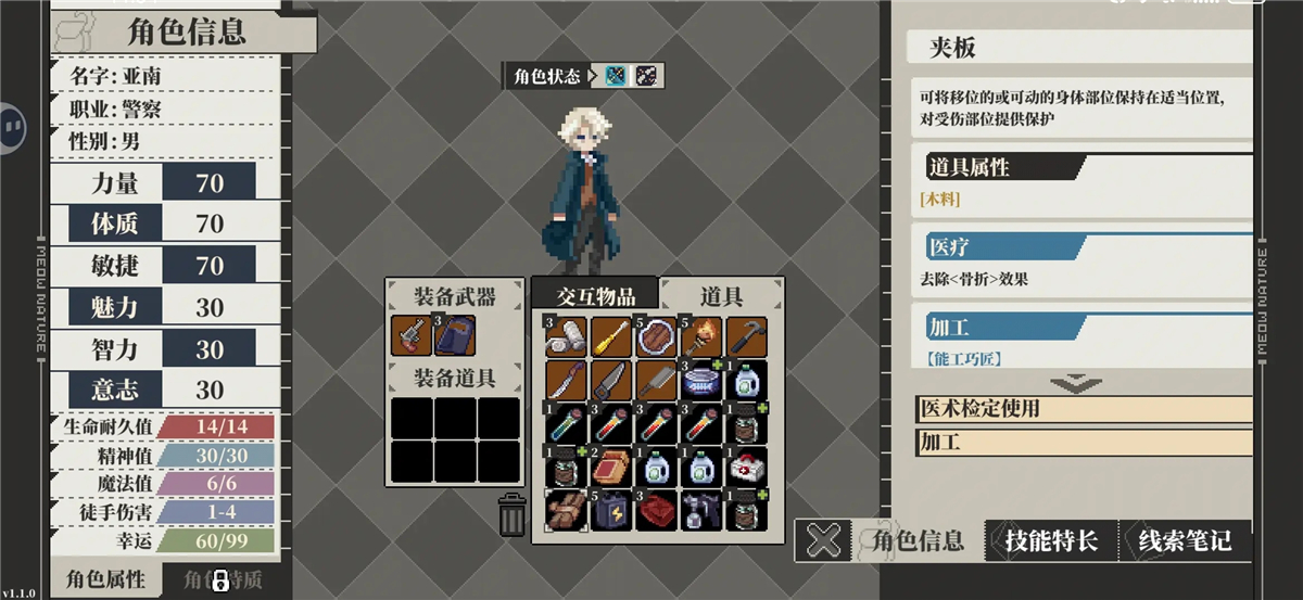 1、把战斗属性调到最高,职业选警察(有盾牌)。
