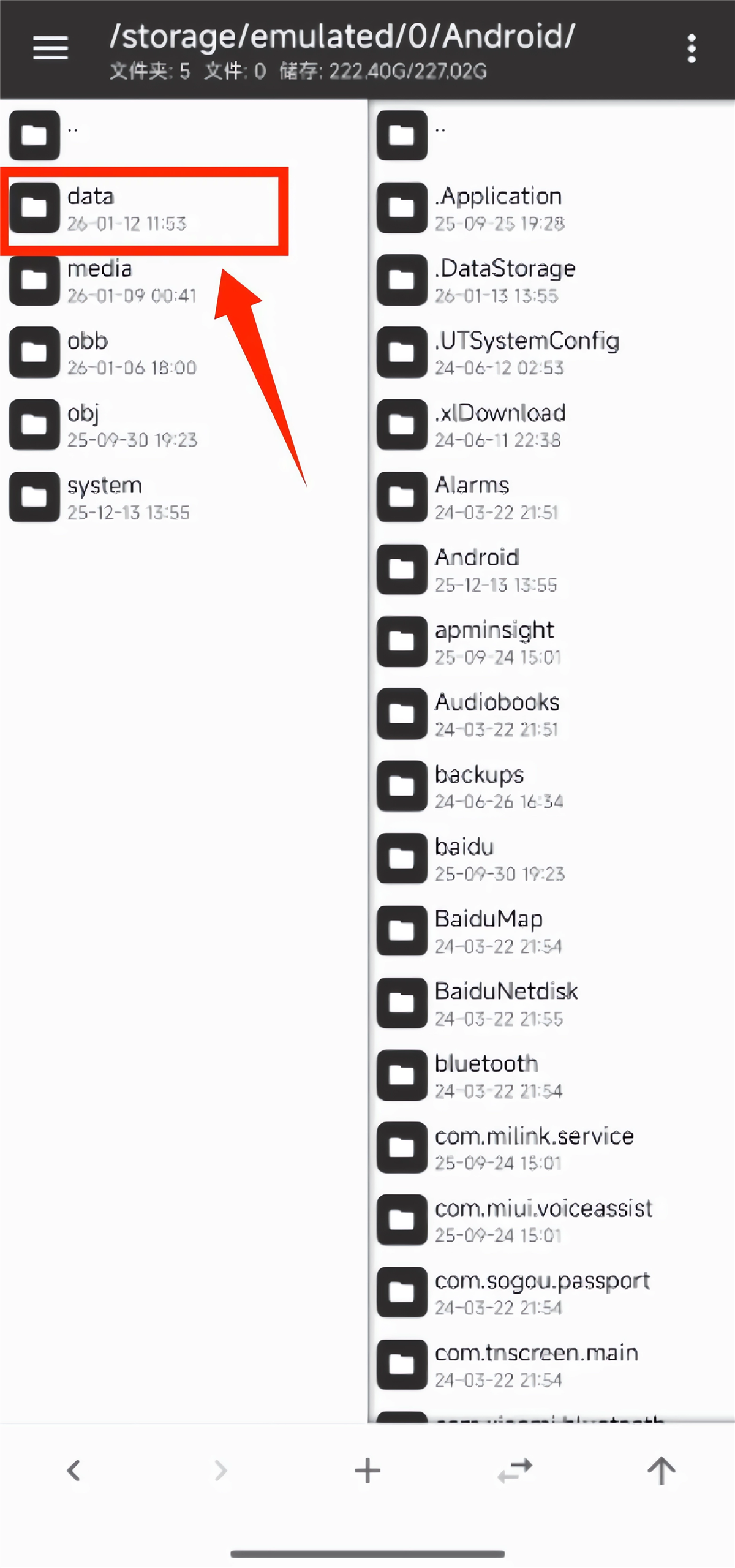 4、找到并点击【data】文件夹。