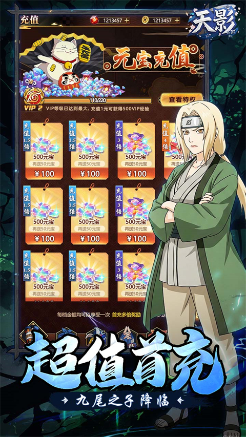4、首充即享双倍暴击,限定UR九尾鸣人助力冲榜直取忍界巅峰!