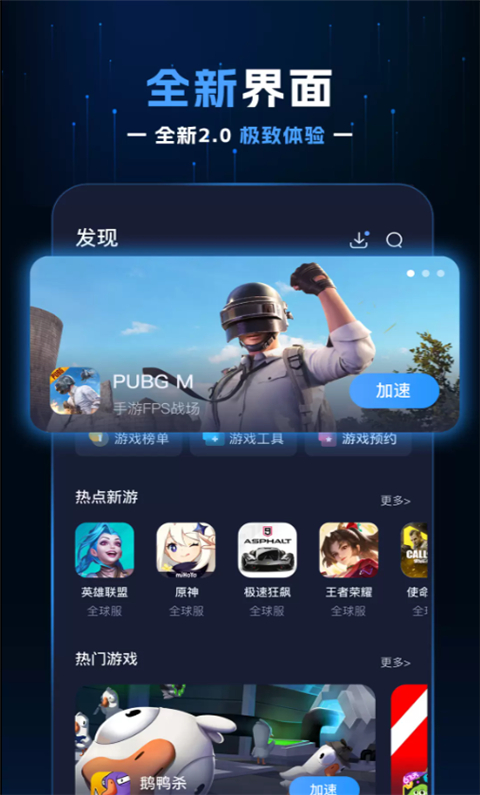 支持传奇M、绝地求生:刺激战场(pubg)、未来之役、火炬之光:无限、undecember(十三月)、宝可梦大集结、战地手游、剑灵2、英雄联盟手游(lol:wild rift)、云顶之弈手游,游戏加速!