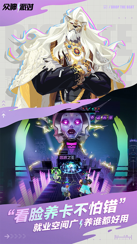 众神派对官服是由莉莉丝自研全球神话策略RPG游戏,该游戏以独树一帜的神话朋克美学画风、包容开放的角色设计理念,以及采用了赛博朋克风格绘制和生动形象的人物角色为玩家构建了一个精致的魔幻世界。在游戏里玩家们将来到一个过去与未来碰撞的奇幻空间,需要招募代行者与神迹怪物以前所未有的方式进行战斗,并通过打造自己的代行者战队,在电子音乐与霓虹灯构造的都市幻想世界里尽情遨游。