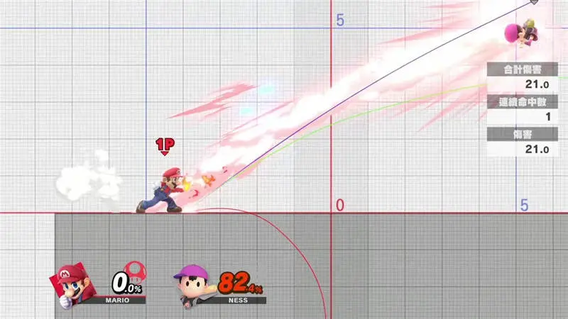 本作训练模式加入新的场地,才用方格形背景,甚至会随玩家的攻击标出击飞曲线,适合玩家反复练习。