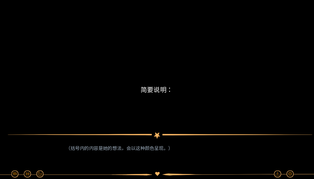 1、游戏的检验简要说明,括号内的浅蓝色字体代表玩家的内心想法,黄色字体则是旁白介绍。