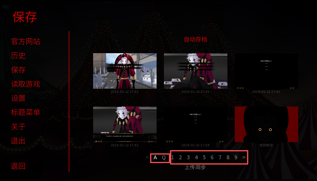 8、可以看到众多存档,“A”为自动存档,“Q”为快捷存档,其余数字为手动存档,方便玩家完美体验游戏剧情。