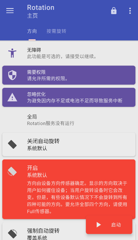 3、以强制横屏为例,点击并选择后,系统会请求获取权限,只需激活即可开始。