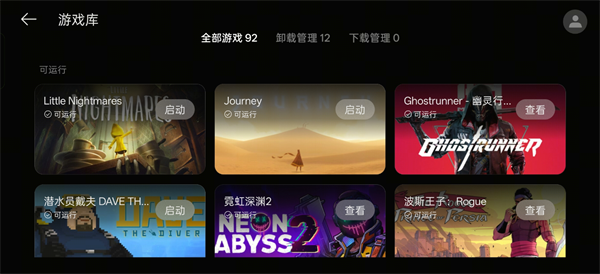 2、本地有游戏时、可查看最近游玩体验的游戏名单,并快速启动游戏。