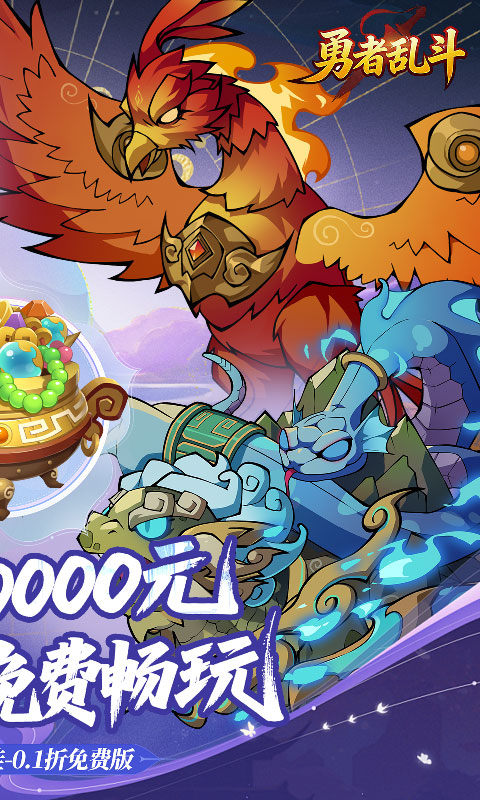 勇者乱斗(0.1折万元代金免费版)是一款休闲开箱卡牌手游,此版本充值0.1折,玩家上线即可免费领取千抽福利,每日签到还可领10000代金卷,真正实现了免费零氪版,帮助玩家轻松获取畅快游戏体验。同时勇者乱斗手游以山海经为题材,玩家可收集山海经中众多的奇珍异宝和山海神兽,并根据自己的喜欢养成升级,以此提升战力,消灭更多的敌人。另外,勇者乱斗手游还融合多种PVE/PVP玩法和趣味养成路线,玩家可全自动托管放置解放双手,无需操作。感兴趣的朋友还在等什么,快来下载体验吧!