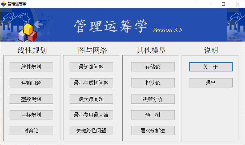 1、运行管理运筹学软件,已显示了全部功能,点击其中一种开始使用;