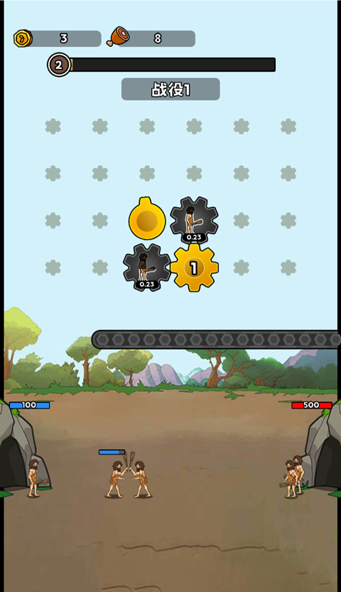 2、齿轮运转后会自动生产兵力,与敌人进行对战;