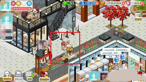 5、注意:在游戏中有红框中的图案的就是有空闲摊位,点击开店,之后等待好友接受就可以了。