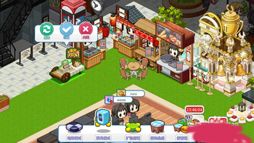 4、在自己家里设置完路边摊之后,到好友家里转一转,看看有没有空闲摊位把剩余的摊位开在好友家里。