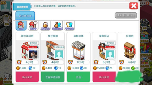 3、设置好摊位以后,可以直接点击摊位购买路边摊开店,也可以在专版背景里购买,路边摊的选择种类非常多,有十几种。Ps.自己只能在家中开一个路边摊。