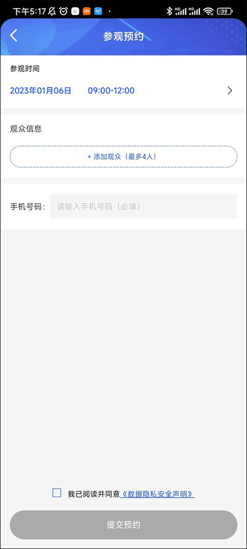 4、最后填写好观众信息和自己的手机号,点击提交预约就可以了。