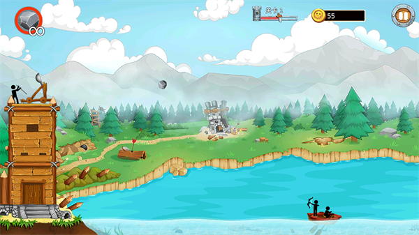 火柴人海上战争是采用火柴人题材而打造的一款海上策略战争游戏。在游戏中玩家将需要滑动屏幕来生成抛物线,然后松开手指发射石头,只有击败所有敌人就可能获得游戏的胜利。当然为了让玩家游玩的更为轻松,游戏内还提供了丰富投射物选择,有需要的玩家可以在游玩的过程中进行购买。除此之外,在火柴人海上战争为玩家提供了可玩性也是非常高的,有着数十种不同的关卡,且随着玩家的通关难度也随之上升。对此,有感兴趣的小伙伴不妨来下载体验一下。