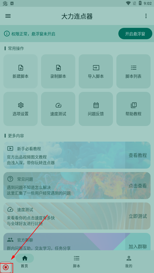 4、录制完毕后记得关闭脚本录制,如下图所示,这时候你就拥有了一个连点脚本啦。