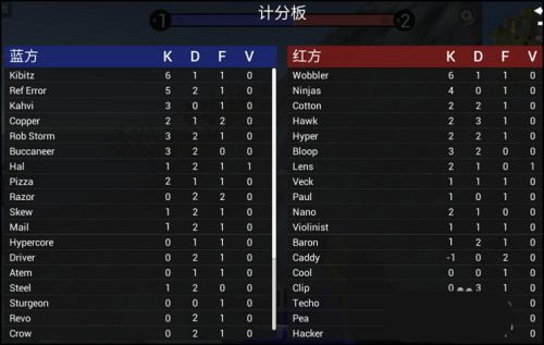 7、游戏过程中可查看计分板,查看红色,蓝色双方的积分