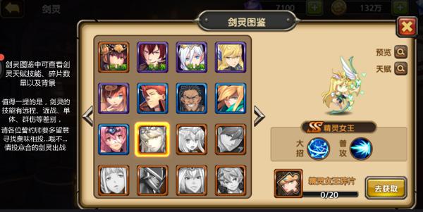 游戏中的剑灵有很多种,品质分为蓝A、紫S、橙SS三个品质,每个剑灵都拥有自己的专属技能,在剑灵图鉴中可以看到剑灵的详细信息。